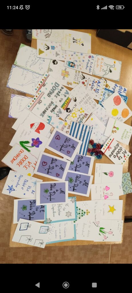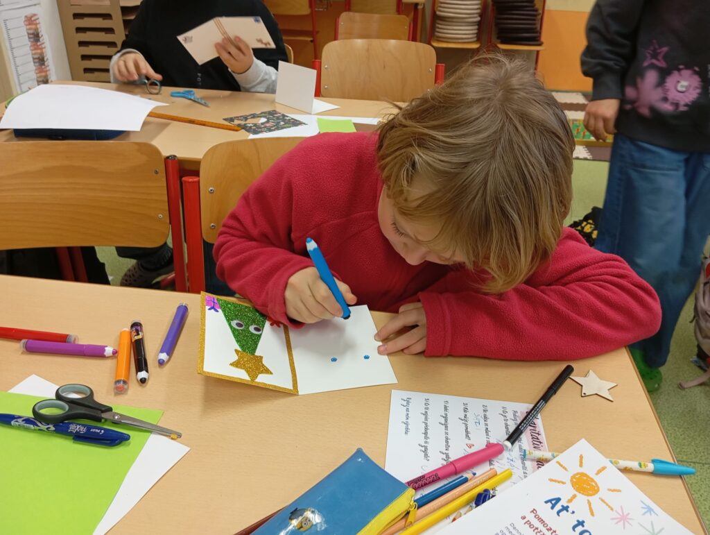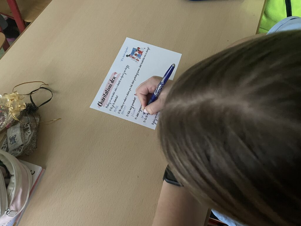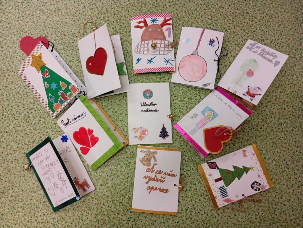 Jednotlivé třídy vyráběly krásná přáníčka určená sestřičkám ve FNOL, seniorům i nevidomým. Každé přání bylo originální a vznikalo s cílem potěšit, poděkovat a vykouzlit úsměv na tváři těm, kteří si to opravdu zaslouží.