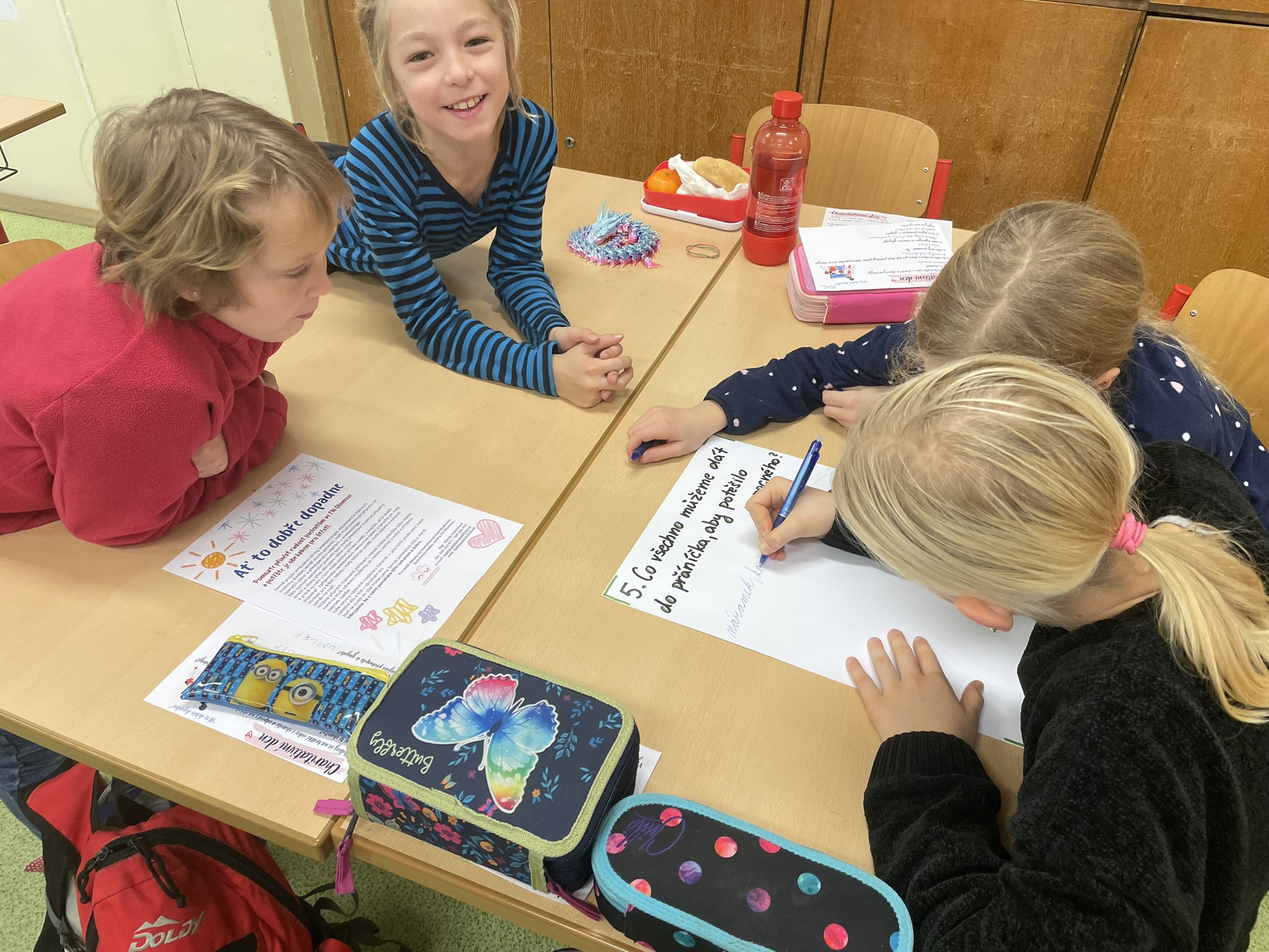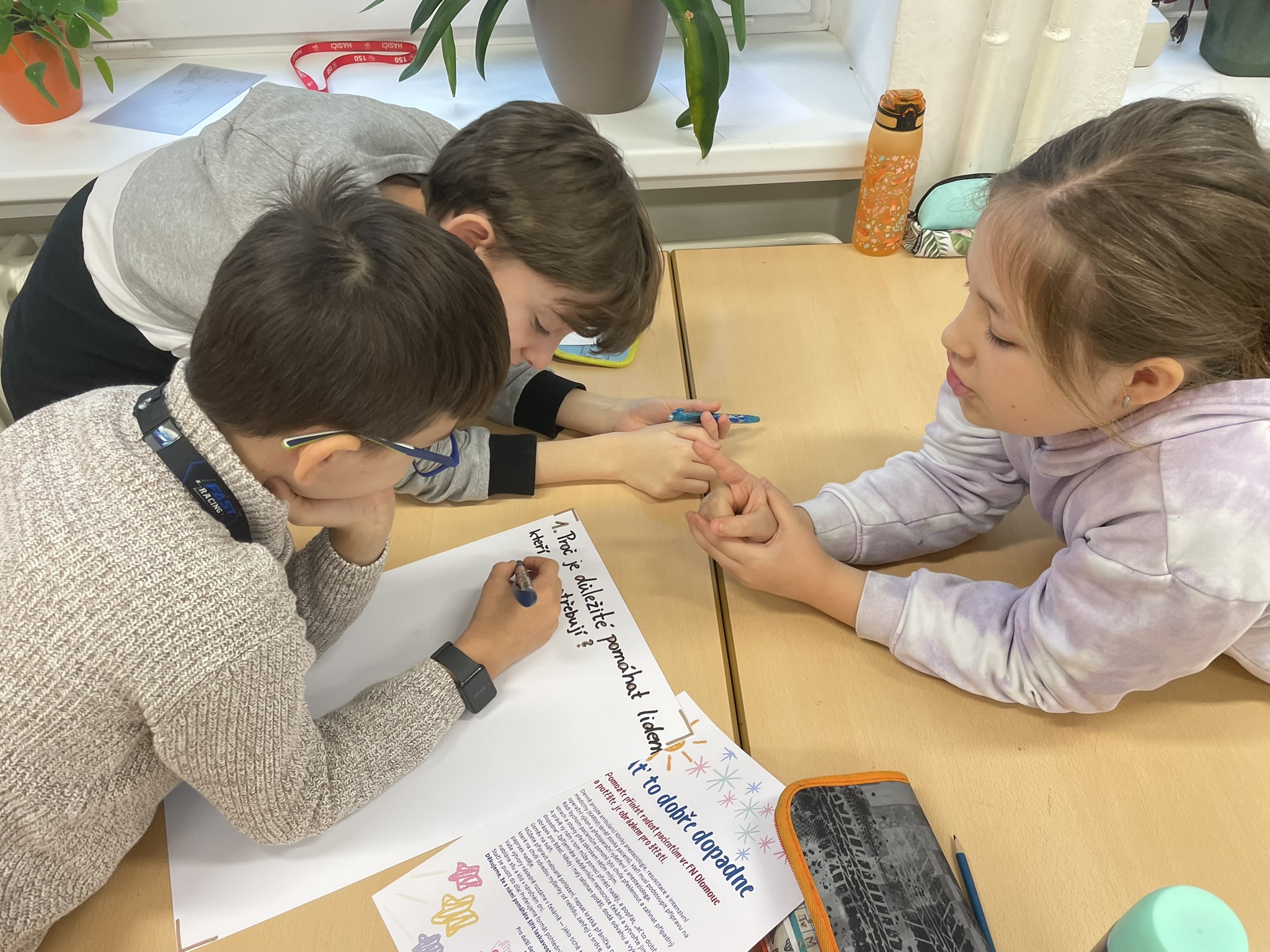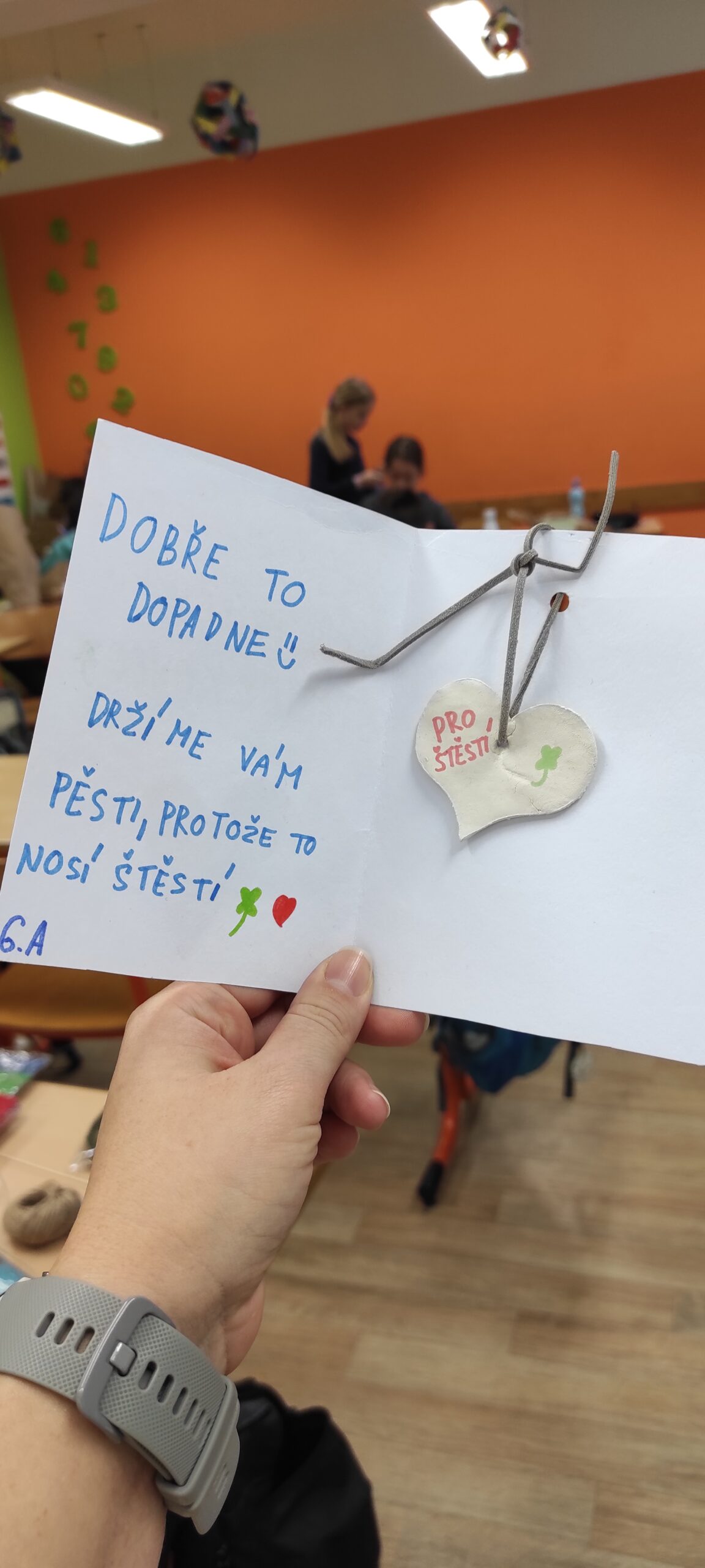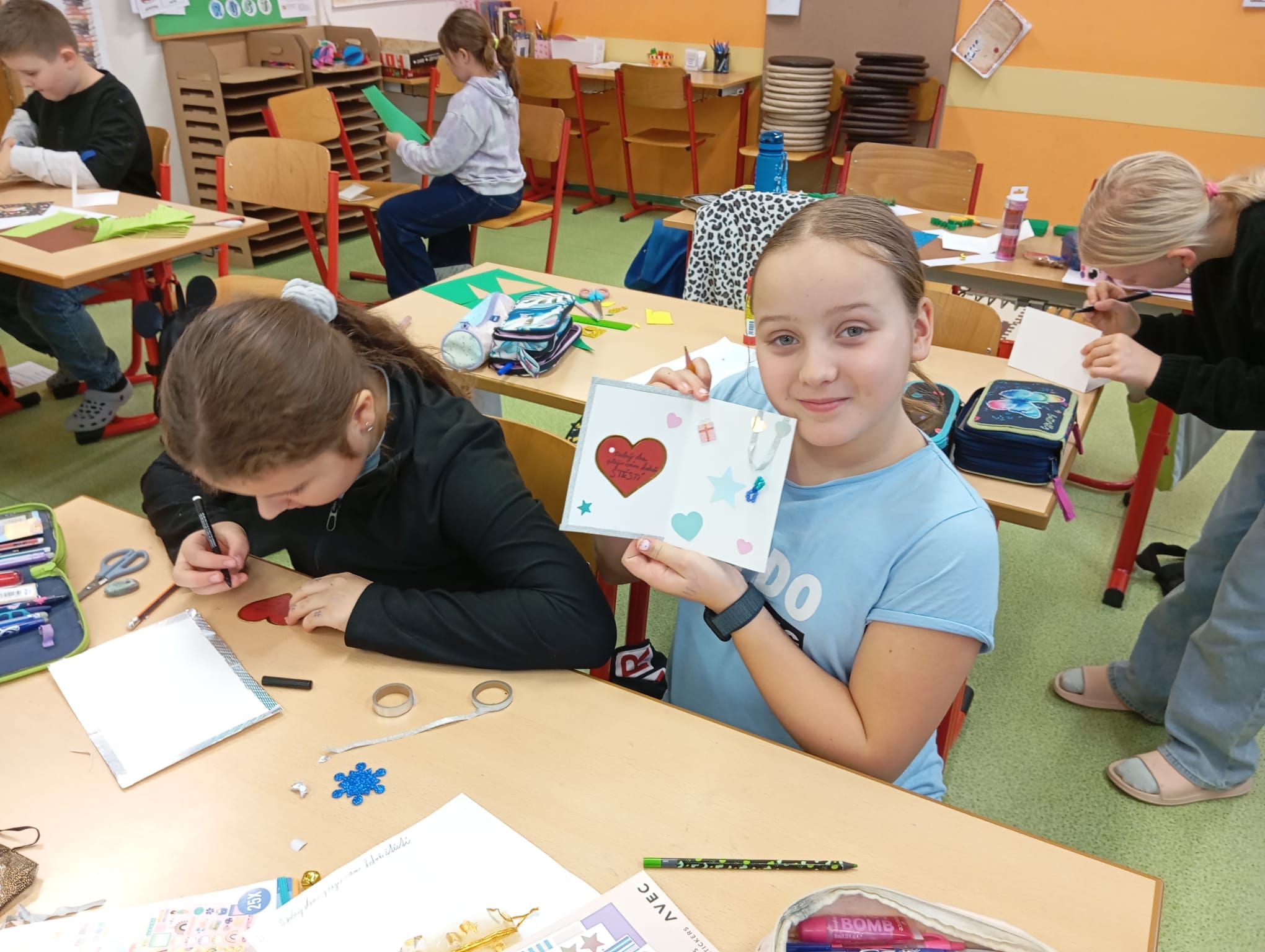 Jednotlivé třídy vyráběly krásná přáníčka určená sestřičkám ve FNOL, seniorům i nevidomým. Každé přání bylo originální a vznikalo s cílem potěšit, poděkovat a vykouzlit úsměv na tváři těm, kteří si to opravdu zaslouží.